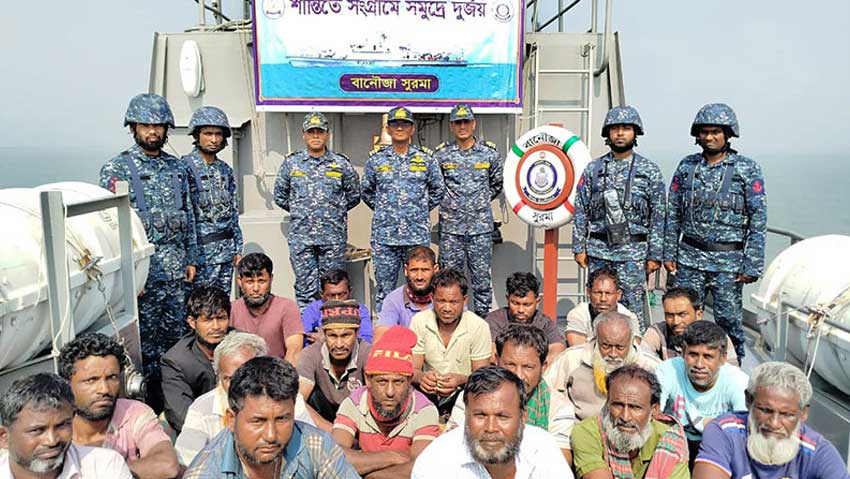 Upon receiving the alert, BNS Surma immediately proceeded to the location and successfully rescued the distressed fishing boat along with all 20 fishermen on board.